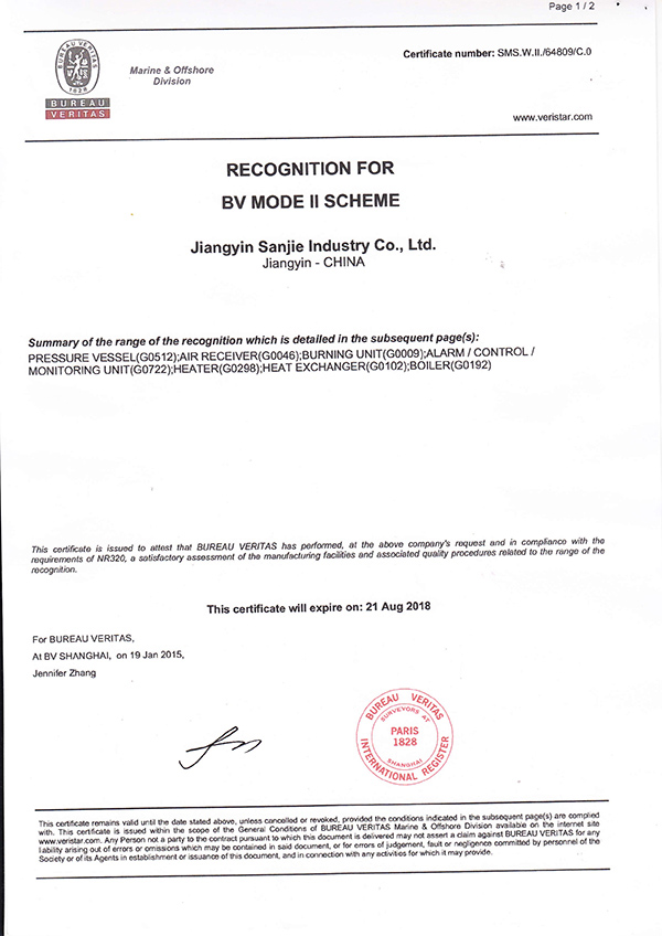 “杰出的技術、杰出的質量、杰出的服務”是三杰品牌的立足之本。公司已獲得:A1鍋爐部件、B級鍋爐、有機熱載體爐制造許可證 A1、A2類壓力容…